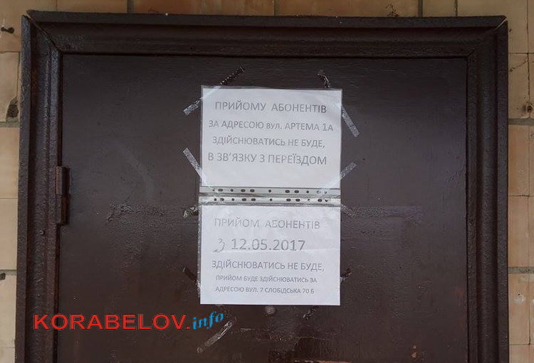 С 12 мая 2017 года жители Корабельного района, приходящие со своими «газовыми книжками» по привычке на ул.Океановскую (бывшую ул.Артема), 1А, уходили ни с чем, ознакомившись с объявлением на двери теперь уже не работающего отделения Центра обслуживания клиентов ПАО «Николаевгаз»: