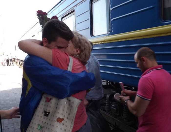 На вокзалі з шампанським, квітами і сувенірами наших переможців зустріли представники Федерації боксу Миколаївської області, а також рідні боксера і тренера.