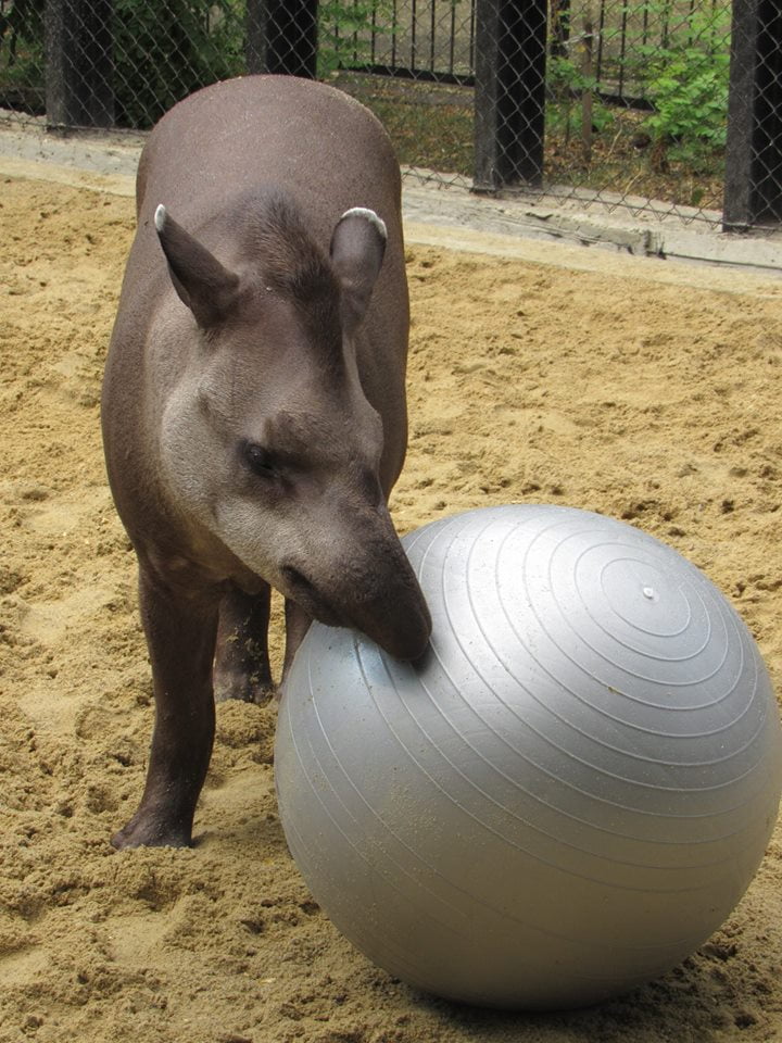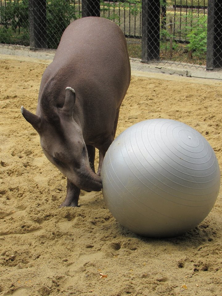 Тапиры в Николаевском зоопарке полюбили играть в футбол