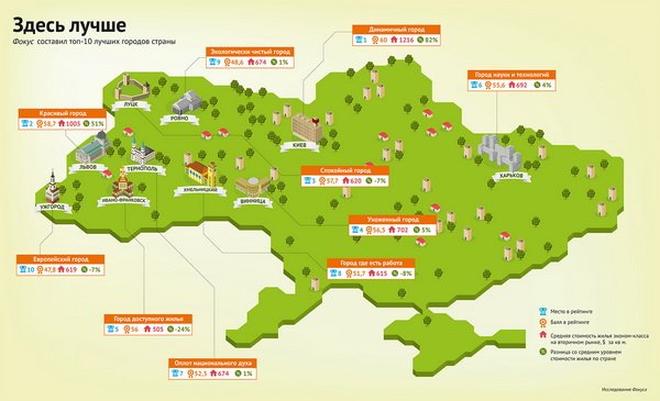 Журнал «Фокус» опубликовал рейтинг комфортности украинских городов. В нем участвовали столица и все областные центры, за исключением оккупированных Донецка, Луганска, Симферополя.
