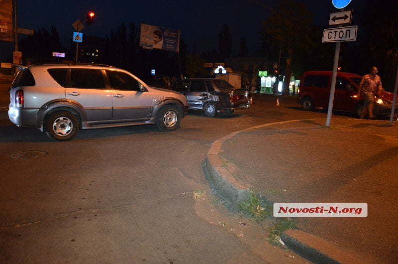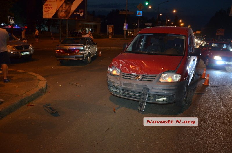 Вечером в воскресенье, 13 августа, на пересечении проспекта Богоявленского и ул. Васляева в Николаеве столкнулись автомобиль Volkswagen Caddy, ВАЗ 2115 «Лада Самара» и SsangYong Rexton.