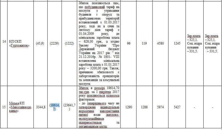 За первое полугодие 2017 года «Николаевводоканал» ушел в убыток на 18,6млн грн!, на втором месте с большим отрывом! – КП «Гуртожиток» с убытком в 2,2 млн грн, третьим стало КИП по организации питания в учебных заведениях с 1,6 млн грн убытка.