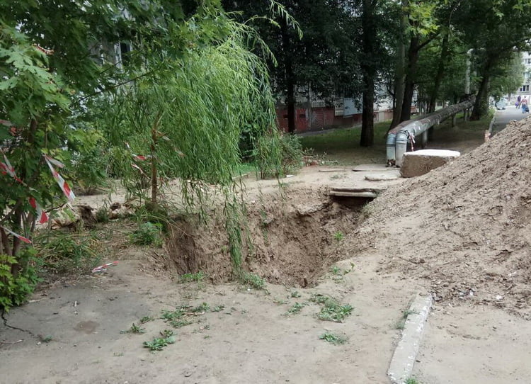Жительница дома по улице Океановской (бывшей ул. Артема), 32-в в Корабельном районе Николаева жалуется на нерадивость «коммунальщиков», разрывших большую яму во дворе «многоэтажки» и, похоже, забывших о ней.