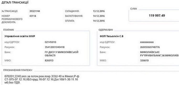 Из информации, опубликованной на сайте публичных закупок Prozzoro, следует, что работы по текущему ремонту крыши школы №40 были заказаны в ноябре прошлого года у предпринимателя Теселкина С.В. и обошлись городу в 119 тысяч 997 гривен.