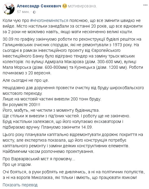«Глаза боятся, а руки делают. Несмотря ни на политических популистов, ни на врагов Николаева, которые только и умеют, что работать языком!», — подытожил Сенкевич.