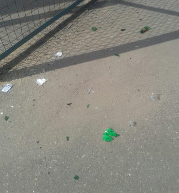 Сегодня невозможно было гулять с детками возле «Водолея»: битые бутылки в скейт — парке, обломки упаковочной тары, летающие листовки, не вывезенный мусор… Каждое падение неумелых скейтбордистов, велосипедистов, роллеристов, маленьких деток грозило бы серьезными травмами и порезами стеклом.