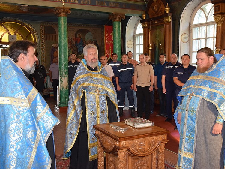 Під час богослужіння, священнослужителі заспівали молитви за мир в Українській державі, за припинення лихоліття, і звісно, ж закликали всіх святих захищати представників «вогняної» професії та усього людства від нищівного полум’я. А наприкінці служби отець Анатолій звернувся до всіх присутніх із привітальним словом та побажав рятувальникам Божого благословення та захисту у всіх починаннях та буденних справах.