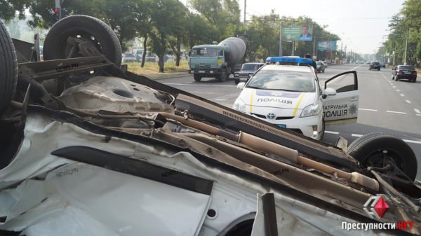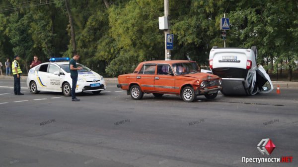 После столкновения с «ВАЗ-2101» в Николаеве «Renault» перевернулся на крышу, водитель госпитализирован