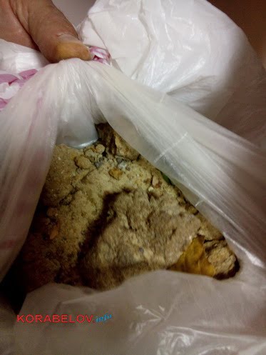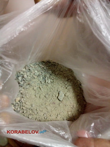 Делегация принесла с собой в администрацию образцы материалов, насыпанных в изобилии в их дворе между домами № 6 и №8 по пр. Корабелов: на стол Цуканову выложили пакеты с гранитным «отсевом» и кусками глины: