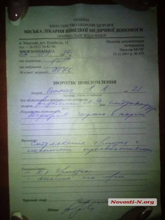 В понедельник, 25 сентября избитые девочки написали заявление в Ингульский (Ленинский) отдел полиции. В больнице скорой помощи, куда обратились пострадавшие, врачи выявили у обеих девушек сотрясение головного мозга и многочисленные ушибы.