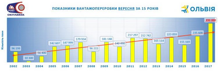 Вантажопереробка стивідорної компанії за вересень склала 350 000 тонн, що на 48,6% (+114 399,93 тонн більше минулорічного показника, який до цього був рекордом вересня за останні 25 років.