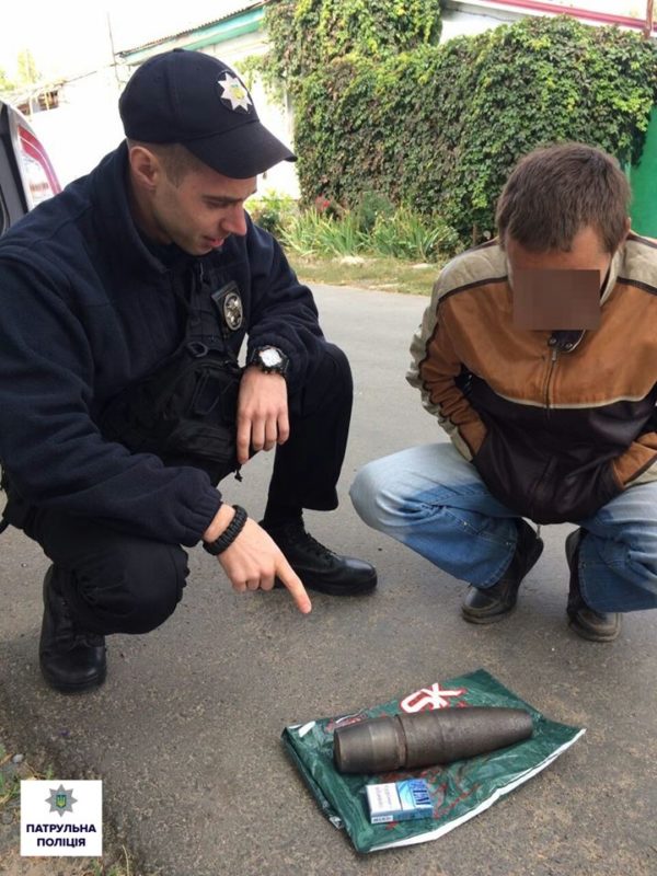 Зупинивши даного громадянина, інспектори згідно Ст. 34 ЗУ про Національну Поліцію здійснили поверхневу перевірку, в ході якої у 40-річного громадянина було виявлено предмет схожий на артилерійський снаряд 80 мм.