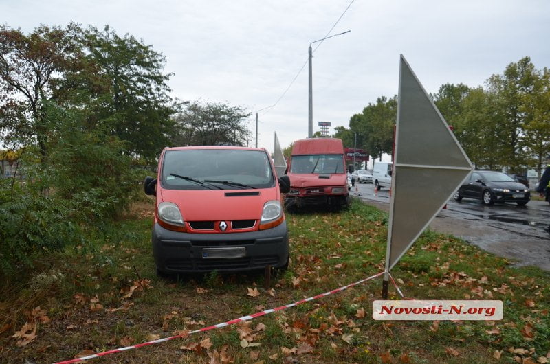Днем в субботу, 7 октября, на проспекте Богоявленском в Корабельном районе Николаеве столкнулись микроавтобус «Renault Trafic» и маршрутное такси (следующее по маршруту №2) «Iveco».