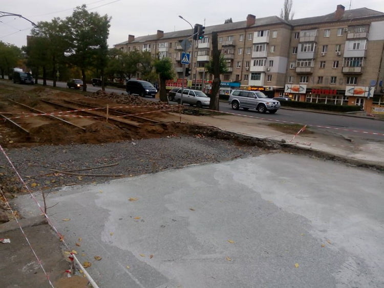 На перехресті пр. Богоявленського та вул. Театральної розібрали рейко-шпальну решітку, зробили подушку з щебеню та підготували бетонну основу під нові плити з технологією безшумної рейки (буде між рейкою та бетонною вибіркою укладена шумопоглинаюча гума).