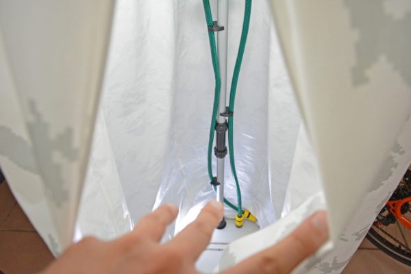 По словам разработчиков, легкий переносной полнофункциональный душ позволит велосипедистам помыться в любом месте (офисе, загородном доме), где есть доступ к воде и розетке. Кроме того, капсула занимает небольшое пространство, быстро разворачивается и собирается в любом малогабаритном санузле.