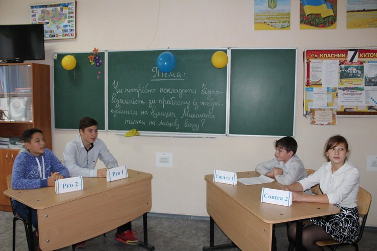 Учні дебатували на тему: «Чи потрібно покладати відповідальність за проблему жебракування на вулицях Миколаєва тільки на місцеву владу?».