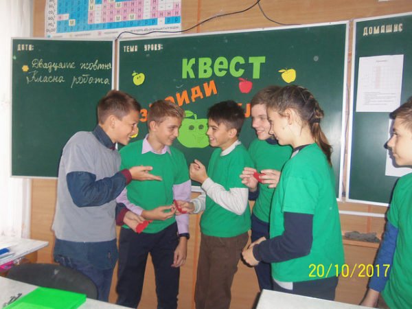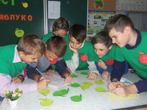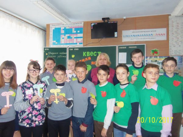 20 жовтня до Дня яблук для учнів 7-х класів учителем хімії та основ здоров’я Н.Ю. Шмаковою проведено природничий квест «Знайди Яблуко». Команди 7-А класу «Аррle-pie» і 7-Б класу «Apple» отримали загадковий лист, чарівний листок та карту-схему, за допомогою яких можна знайти скарби.