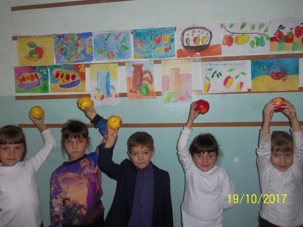 Вівторок, 17 жовтня, у школі був присвячений ролі яблука в образотворчому мистецтві. Під керівництвом вчителя образотворчого мистецтва Т.В. Гарус учні 1-4 класів малювали своє бачення яблучної осені, що так милувала нас своїми фарбами весь тиждень.