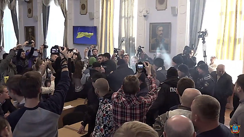 "Сенкевич заминировал здание Николаевского горсовета" - Казакова. Беспорядки на сессии (видео)