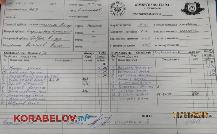 11 ноября, в рамках зимнего чемпионата города Николаева по футзалу, в спортивном комплексе «Зоря» состоялся матч между командами государственного предприятия «Стивидорная компания «Ольвия» и компании программного обеспечения «Global Logic».
