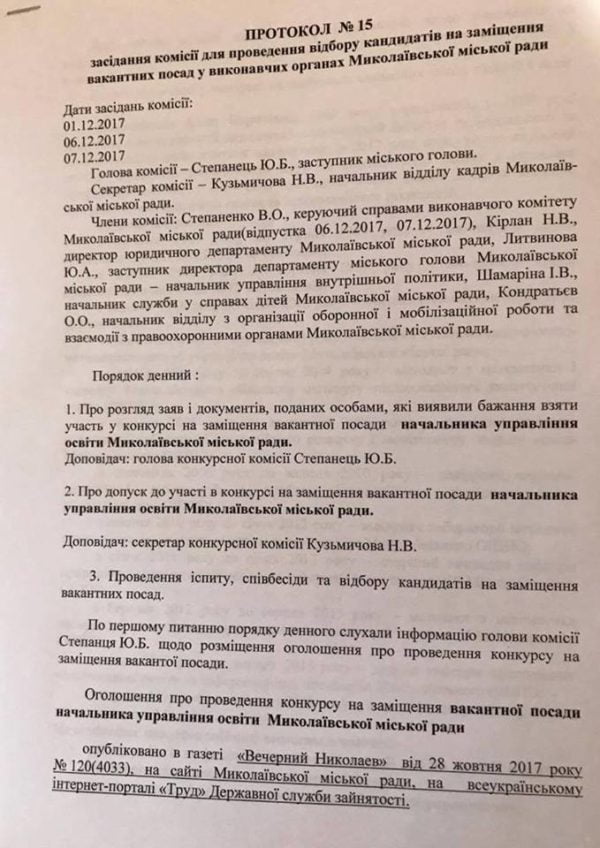 Враховуючи вищезазначене, виконуюча обов’язки Миколаївського міського голови-секретар Миколаївської міської ради Тетяна Казакова звертається до Олени Осипової з проханням взяти участь в другому конкурсі на посаду начальника управління освіти ММР, який незабаром буде оголошено: