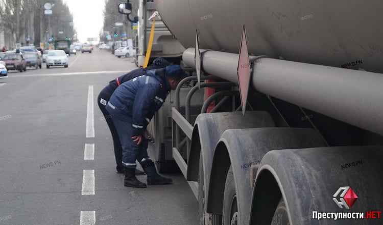 В Николаеве 20 декабря на улице Пушкинской патрульные остановили за нарушение ПДД грузовой автомобиль с цистерной, в которой обнаружили утечку опасного вещества.