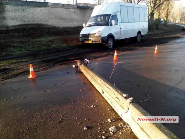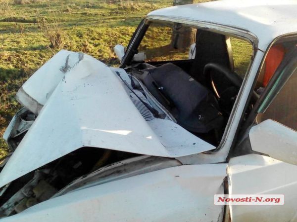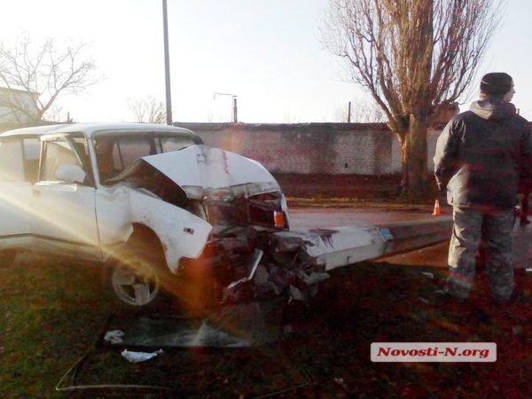 Утром в четверг, 28 декабря, на ул. Знаменской в Николаеве автомобиль ВАЗ 2107 врезался в столб.