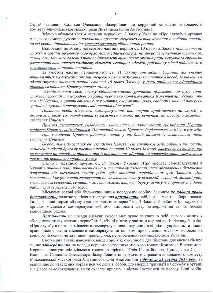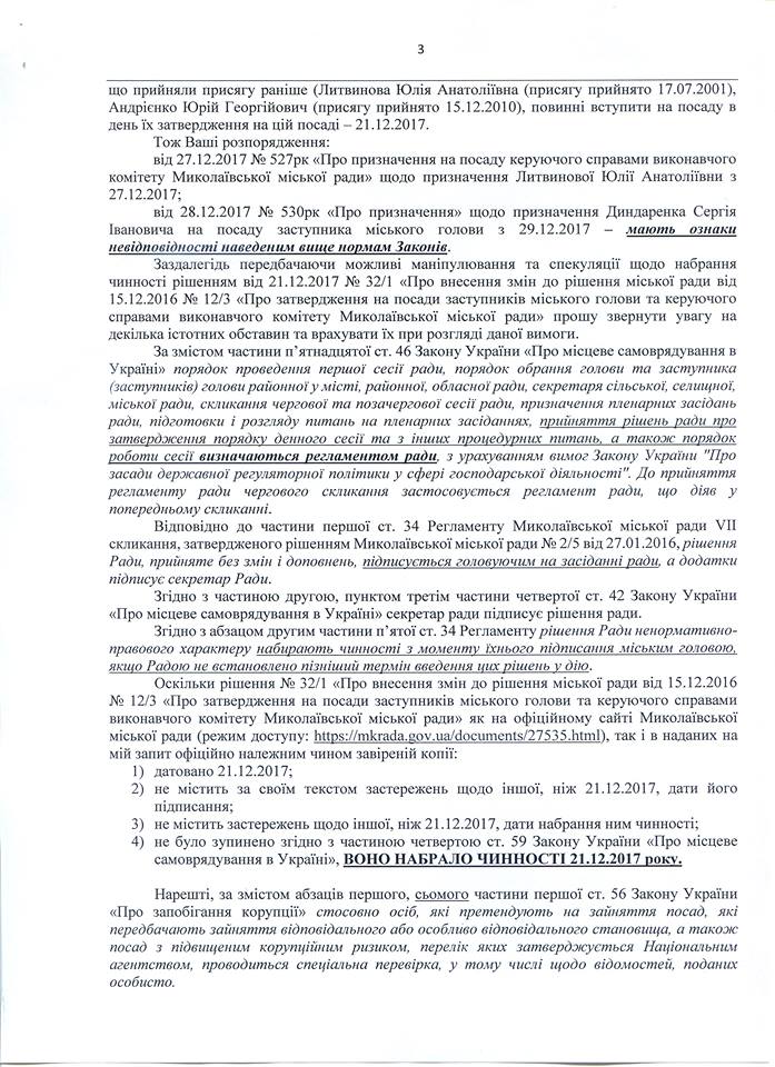 21 декабря 2017 года Николаевским городским советом «под елочку» был принят ряд одиозных решений, одно из которых — № 31/2 «О внесении изменений в решение городского совета от 15.12.2016 № 12/3 «Об утверждении на должности заместителей городского головы и управляющего делами исполнительного комитета Николаевского городского совета»: https://mkrada.gov.ua/documents/27535.html.