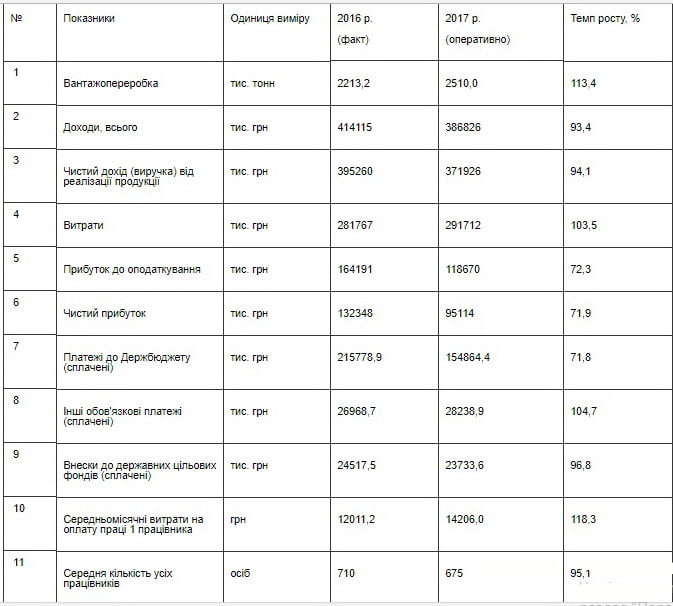 Так, за 2017 рік перероблено 2 510 113 тонн вантажів, що на 13,4% більше рівня 2016 року та на 1,4% — попереднього рекорду 2010 року.