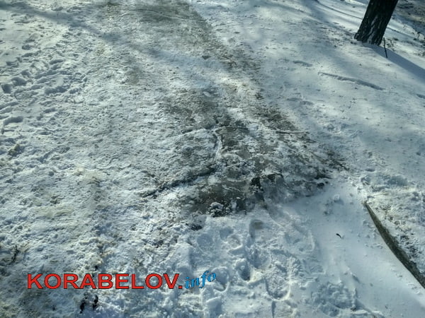 К примеру, очень скользким оказался участок от остановки «Универмаг» (возле бывшего бара «Прага») в сторону здания районной администрации.
