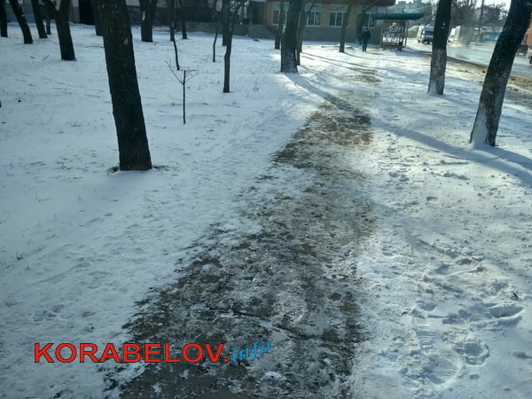 «Корабелов.Инфо» проверила состояние тротуарных дорожек (очистили ли их должным образом от снега и посыпаны ли они песком) в Корабельном районе города Николаева (выборочно).