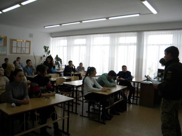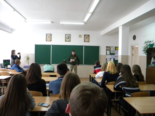 Офіцери поділились з учнями своїм бойовим досвідом та поінформували про пріоритети військової служби, ознайомили з порядком вступу до вищих навчальних закладів за військовим напрямком, перевагами військової служби за контрактом та закцентували увагу на проблемних питаннях, які можуть виникнути під час вступу до вищих навчальних закладів.