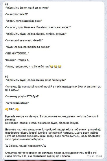Также в Telegram «рыцари» описывают инциденты, которые закончились применением силы.
