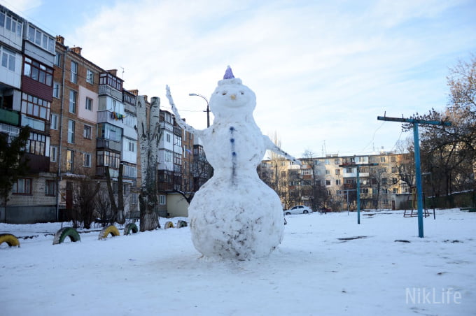 Не пасуть задніх у плані креативності й мешканці сусіднього з Корабельним — Інгульського району міста Миколаєва. Так, у дворі багатоквартирного будинку по вул. Південній у вівторок, 6 лютого, спорудили сніговика-гіганта — його висота перевищує три метри: