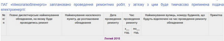 Отметим, что с графиком плановых отключений электроэнергии, связанных с проведением ремонтных работ, можно ознакомиться на официальном сайте «Николаевоблэнерго».