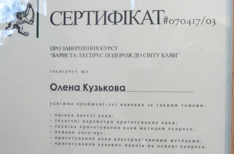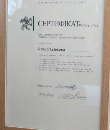 Баристы кофейни являются сертифицированными специалистами, проходившими всеукраинские мастер-классы.