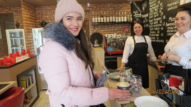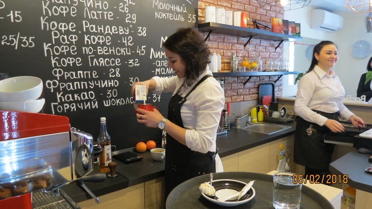 Среди наших гостей были и иностранцы, мы можем, если нужно, обслужить человека, который общается по-английски. Бариста Лена может обслужить людей с нарушением слуха – она знает язык жестов. Мы стараемся развиваться профессионально — посещаем разные кофейные выставки, проходим мастер-классы. Мы продолжаем работать с «Частной кондитерской 27». В ближайшем времени планируем расширять ассортимент».