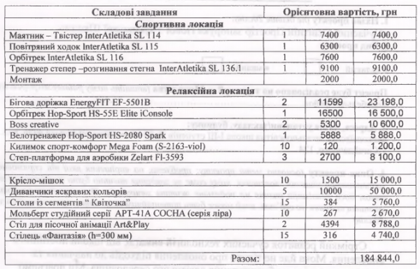 Вартість проекту, запропонована авторами, складала 184 440 гривень.
