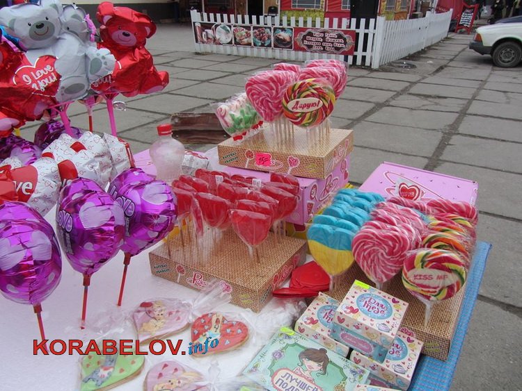 Наиболее популярным реализуемым подарком в Корабельном районе оказались воздушные шары в форме сердец. Их цена, в зависимости от величины, колеблется от 50 до 250 гривен. Сделать Ваше признание ещё более сладким поможет тематический леденец за 15 гривен.