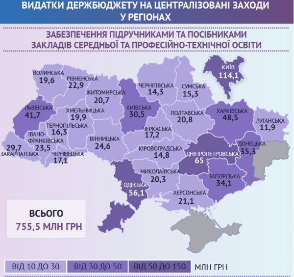 На образование выделено 8,4 млрд грн, из которых в Киев пойдет столько же денег, сколько выделено для 7 областей вместе взятых (Луганской, Донецкой, Днепропетровской, Запорожской, Закарпатской, Ивано-Франковской, Волынской).