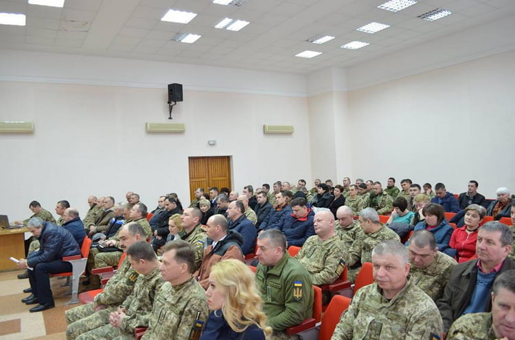 Друга частина заняття розпочалася у великій сесійній залі Вітовської державної адміністрації. Перед присутніми виступив військовий комісар Миколаївського обласного військового комісаріату, який підвів підсумки проведення призову громадян України на строкову військову службу у 2017 році та визначив завдання на весняний призов 2018 року.