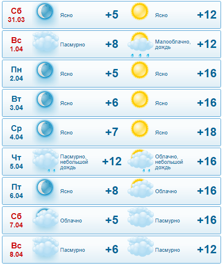 Сайт Gismeteo.UA обещает на Пасху и предпраздничные дни в Николаеве следующую погоду: