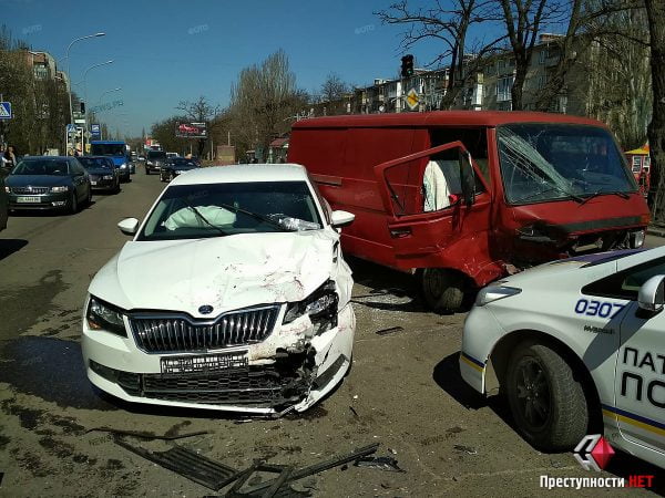 Днем в среду, 4 апреля, в Николаеве на проспекте Богоявленском произошло дорожно-транспортное происшествие с участием микроавтобуса «Volkswagen» и легкового автомобиля «Skoda», в результате которого пострадали четыре человека, в том числе семилетний ребенок. Об этом с места ДТП передает корреспондент «Преступности.НЕТ».