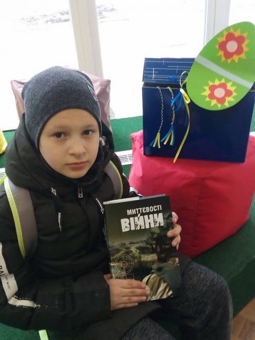 Діти почули розповідь про книгу «Миттєвості війни» (керівник авторської колегії С.С. Макарчук), яка містить біографічні нариси про військовослужбовців, які загинули в Криму та на сході країни, спогади наших земляків — учасників антитерористичної операції, нариси про бойовий шлях військових підрозділів, що дислокують на Миколаївщині, матеріали про волонтерський рух».