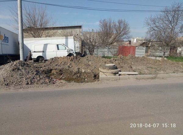 О яме, вырытой еще в 2017 году «Николаевводоканалом» возле проезжей части дороги в Корабельном районе (в микрорайоне Широкая Балка) написал 7 апреля 2018 года в социальной сети Facebook Алексей Зеликов, прикрепив к своей публикации соответствующие фото.