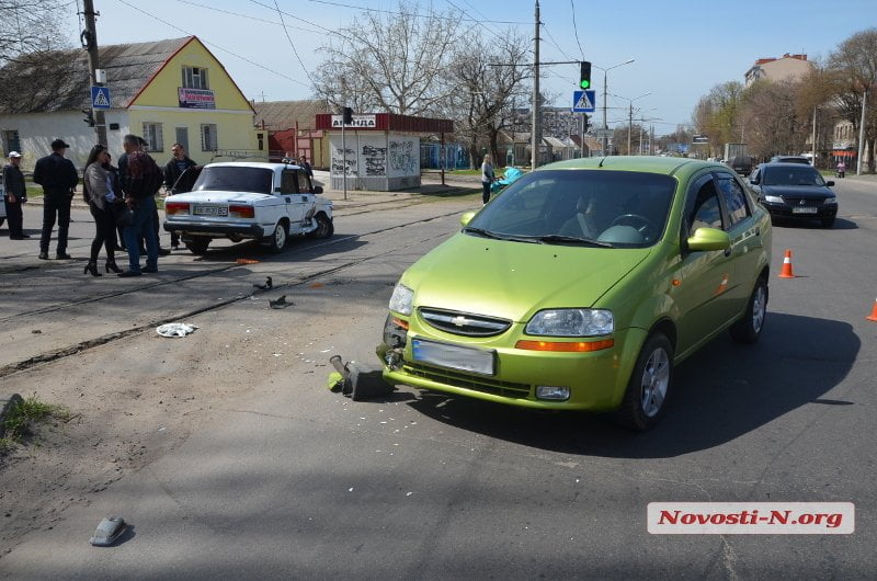 Утром в среду, 11 апреля, на пересечении улиц Кузнечной (бывшей ул. Скороходова) и Садовой в Николаеве столкнулись автомобили ВАЗ 2107 («Жигули») и «Шевроле Авео».