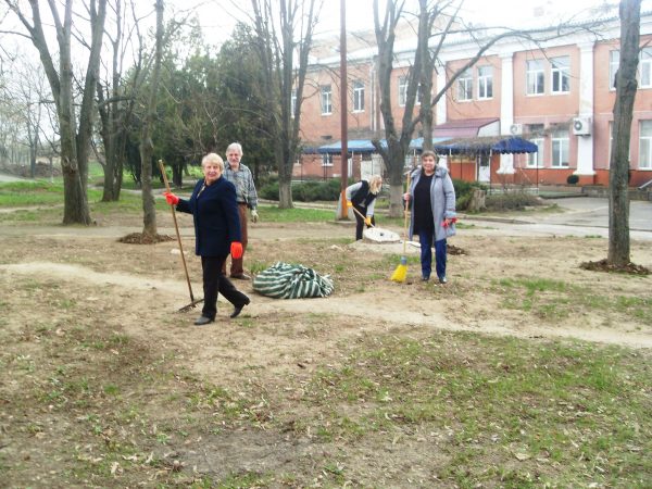 Було прибрано тогорічне сміття, підрізано дерева та кущі, вигребено територію ПК від сухостою та опалого гілля, обкопано дерева та зелені насадження, що прикрашають паркову зону осередку культури.