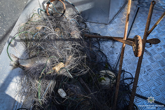 Крім того, неподалік берегової зони, де встановлені скульптурні літери з назвою міста, поліцейськими були виявлені браконьєрські сітки. В них знаходилось три неживі рибини, що свідчить про те, що зловмисники, які встановили злочинні снасті, не поверталися за ними. Вилучені сітки з якорями були пошкоджені та передані працівникам Управління державного агентства рибного господарства для подальшого знищення.