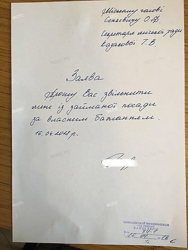 Секретарь Николаевского горсовета Казакова написала заявление на увольнение