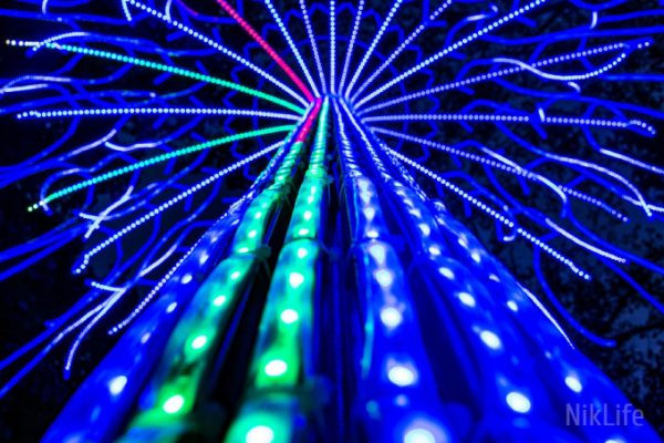 Сейчас дерево будет работать с 20:00 до 22:00 – именно в темноте его красота раскрывается полностью.